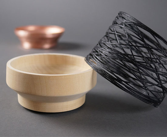 Das kombinieren des Drechsel-Handwerks mit rotierenden Produktions-Methoden stellt den inhaltlichen Schwerpunkt dieser Arbeit dar. Die Rotation ist Grundlage dieser Objektgestaltung. Um Objekte durch Rotation entstehen zu lassen, habe ich mich folgender Methoden bedient: Drechseln, Metalldrücken und Wickeln. Wobei ich bei letzterer Methode eine eigene Maschine entworfen habe welche ein in Epoxidharz getränktes Garn um eine gedrechselte Form gewickelt wird.  Die Kupfer Objekte sind ebenfalls auf eine von mir gedrechselte Form gedrückt worden.