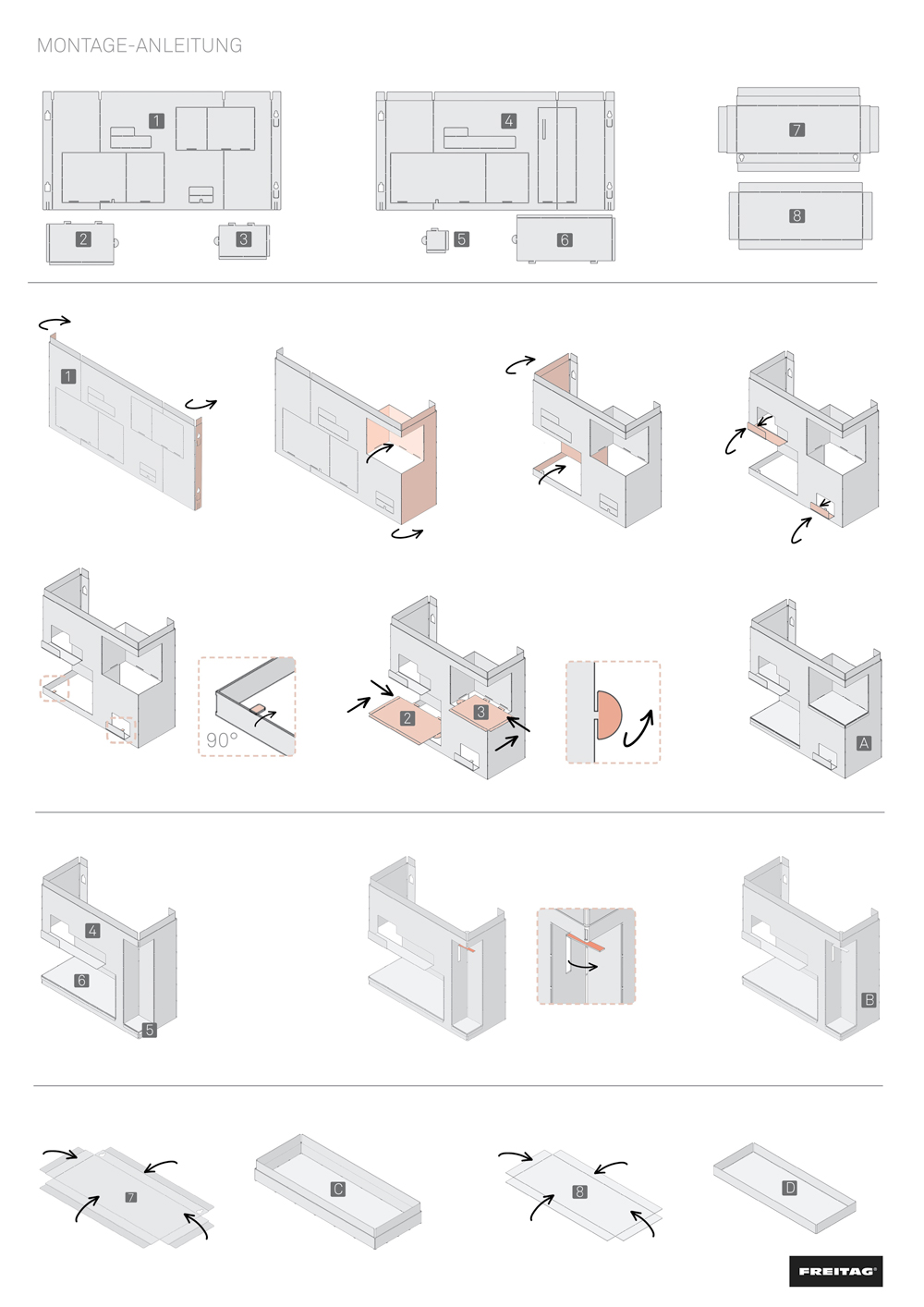 Alle Elemente sind aus eloxiertem Aluminium gefertigt und kommen, wie im Namen angedeutet, flach aus der Produktion. Somit ist eine platzsparende und demnach kostengünstigere Lieferung gewährleistet. Mit Hilfe der enthaltenen leicht nachvollziehbaren Faltanleitung können die Elemente vom Shop Mitarbeiter kurzerhand eigenhändig gebogen und zusammengesteckt werden.